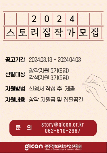 광주광역시(시장 강기정)는 ‘2024년 OTT플랫폼 콘텐츠 기획개발 사업’을 통해 광주 스토리 창작 작가를 오는 4월 3일까지 모집한다.