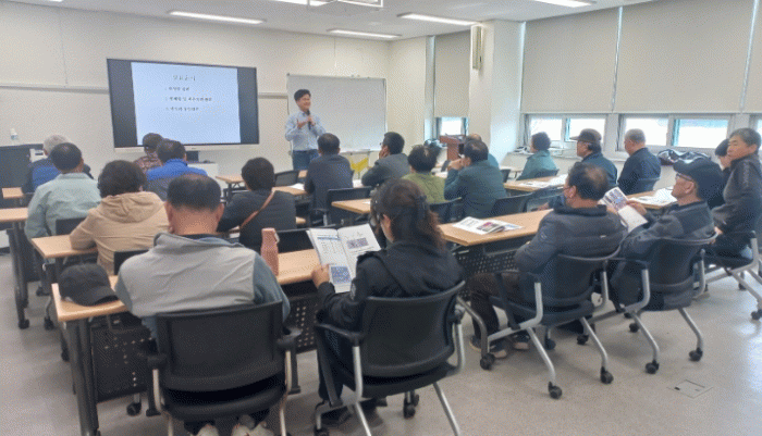 이번 교육은 농촌진흥청 원예특작과학원 송장훈 박사를 초빙해 화상병 예방을 중점으로 병해충 및 저온 피해관리, 전정과 유인 관리 등 배 재배 전반에 대한 교육으로 진행했다.