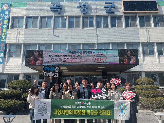 이날 담양군 축산원예과와 곡성군 유통축산과 직원 40여 명이 동참해 총 420만 원의 고향사랑 기부금을 상호기부하기로 협약했으며, 서로의 지역발전을 응원하고 고향사랑기부제의 성공적인 정착 및 업무공유 등에 적극 협력하기로 했다.