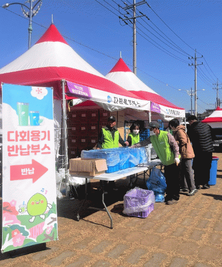 전남도는 지난 8일 개최한 광양매화축제에선 외부에서 살균·세척을 해온 접시와 컵 등 총 19만 8천700개의 다회용기를 제공하고, 구례산수유축제에선 축제장 내에 살균·세척기를 설치해 총 12만 6천700개의 다회용기를 제공했다. 다만 현장 세척 방식은 미관과 하수처리에 문제가 있을 수 있다는 의견이 있어 향후 축제장에서는 사용하지 않기로 했다.