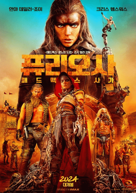 '퓨리오사: 매드맥스 사가'는 문명 붕괴 45년 후, 황폐해진 세상에 무참히 던져진 '퓨리오사'가 고향으로 돌아가기 위해 자신의 인생 전부를 걸고 떠나는 거대한 여정을 그린 액션 블록버스터로, 영화 '23 아이덴티티', '라스트 나잇 인 소호', 드라마 [퀸스 갬빗] 등 매 작품 놀라운 연기로 호평을 받아온 안야 테일러-조이가 ‘퓨리오사’ 역을 맡아 그동안 보여주지 않았던 새롭고 강인한 면모로 열연을 펼쳐낸다.