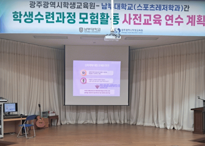 사전교육 연수에 참여한 남부대학교 한 학생은 “이번 연수를 통해 학생수련교육이라는 직업 세계를 경험하는 좋은 기회가 됐고, 학생수련과정 중 모험활동을 안전하게 운영하기 위한 강사의 역할 등을 숙지할 수 있었다”고 말했다.