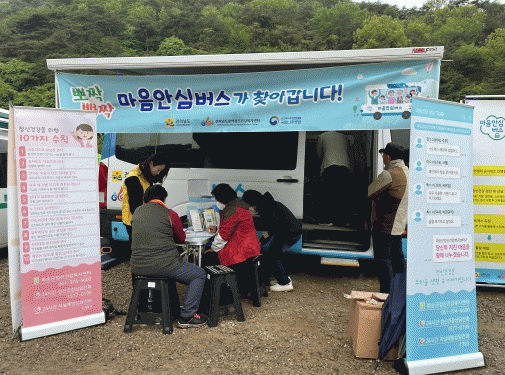 마음안심버스는 지역주민을 대상으로 기동력 있는 버스를 활용하여 직접 찾아가서 정신건강 서비스 이용에 대한 거부감을 낮추고 정신건강 고위험군의 조기 발굴 및 정신건강 서비스 연계까지 지원하는 사업이다.