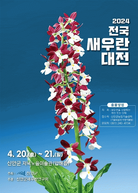 이번 새우란 대전은 전국의 새우란 애란인들을 대상으로 오는 4월 19일까지 신안군농업기술센터 자생식물팀에서 신청받는다. 수상은 대상, 특별대상, 최우수상, 명품상, 1004섬신안상, 특별상 2점, 금상 2점, 은상 4점, 동상 6점, 장려상 11점 총 30점이 될 것으로 애란인들은 소장품을 전시할 기회를 얻고 수상에 대한 영예도 기대한다.