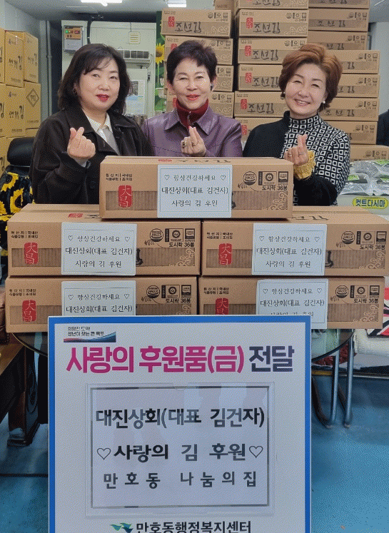 수산 및 건어물 판매 가게인 대진상회(대표 김건자)가 지난 20일 취약계층을 위한 조미김을 후원해, 돌봄이 필요한 어르신 세대를 방문.전달하고 안부를 살폈다.