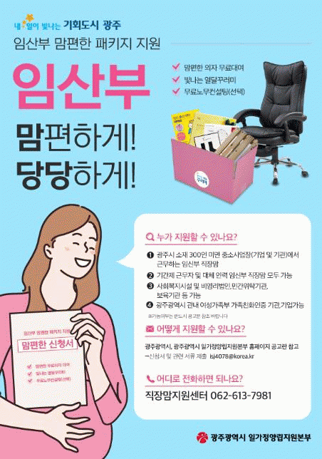 한편 광주시일가정양립지원본부는 자동육아휴직제를 보장하고 임산부의 고용을 유지할 수 있도록 ‘임산부 직장맘 고용유지 지원사업’ 등 다양한 일가정 양립 지원 사업을 추진하고 있다.