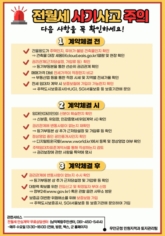 최근 전세사기 피해가 사회적 문제로 대두되고 있고 무안군 일부 임대아파트 및 오피스텔에서도 피해가 발생하고 있다.