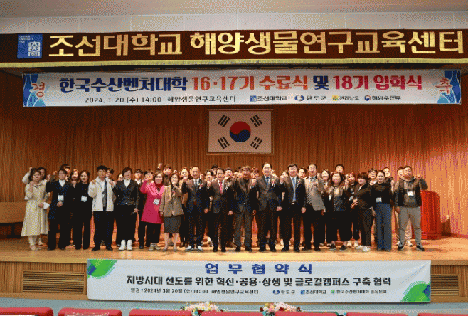 신우철 완도군수는 축사를 통해 수료생과 입학생들에게 “교육 과정에서 얻은 전문 지식과 경험을 바탕으로 우리나라 미래 수산업을 이끌어 주시길 바란다”면서 “수산업이 지속 가능한 산업이 될 수 있도록 전통산업뿐만 아니라 해양자원을 활용한 해양치유와 해양바이오 등 신 해양산업 추진에도 전력을 다하겠다”라고 말했다.