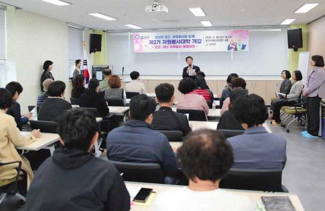 개강식에는 자원봉사대학 수강생 27명이 참석했으며, 전라남도자원봉사센터 김경화 팀장의 특강이 진행됐다. 특강은 ‘재난현장에서의 자원봉사의 이해와 실천’이라는 주제로 효율적인 자원봉사활동을 위한 기본 소양교육 및 재난 현장에서의 자원봉사자의 역할에 대해 교육했다.