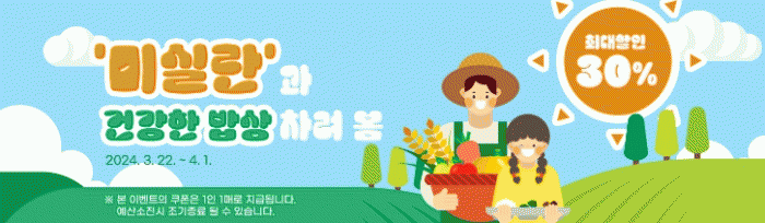‘미실란과 건강한 밥상 차려 봄’주제로 진행하는 이번 기획전에서는 100% 국내산 친환경 잡곡을 활용한 다양한 제품을 합리적인 가격에 만날 수 있다.