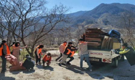 ‘늘 푸른 청정 봉강지킴이단’ 소속 의용소방대 남녀 대원들은 지난해부터 환경정화 활동 책임 구역을 지정받아 체계적으로 활동해 왔으며, 봉강면 신촌마을 일원 산림 연접지 주변에 무단으로 버려진 폐가구 등 쓰레기가 방치돼 산불 위험 요소가 있다는 신고에 따라 산림 정화 활동을 계획하고 약 1톤가량의 쓰레기를 수거했다.