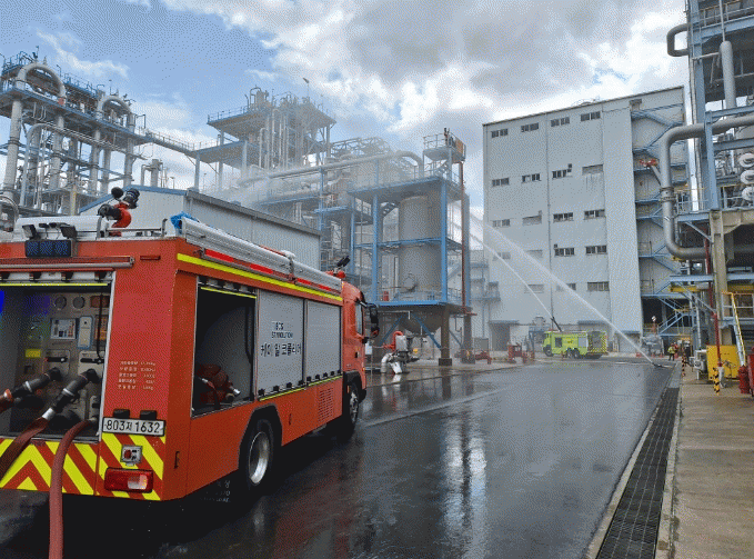 이번 합동소방훈련은 소방공무원과 폴리미래(주), 케이알코폴리머(주), DL케미칼(주) 등 장비 5대와 인원 52여 명이 참여했다.
