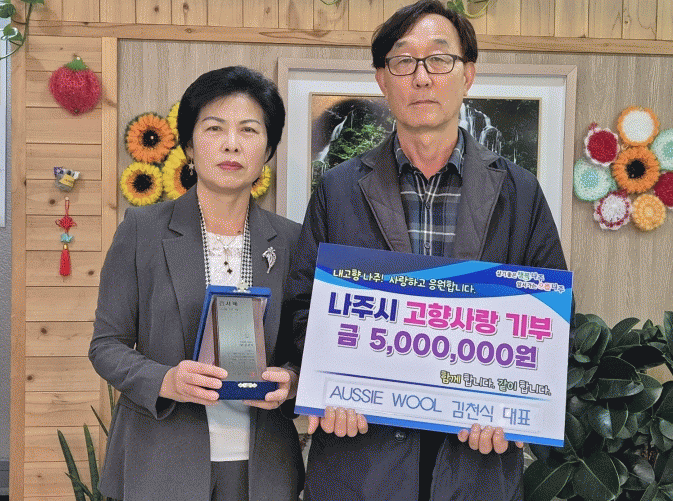 윤병태 시장은 “머나먼 타지에서 가족들과 나주시에 대한 애정과 정성의 뜻을 보내주셔서 감사하다”며 “보내주신 고향사랑 기부금은 ‘100원 마을공동 빨래방 운영’ 등 기금사업에 차질없이 사용하겠다”고 전했다.