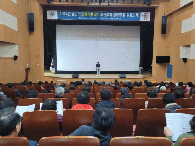 지난 22일에는 마을 공동급식을 추진하는 124개 마을을 대상으로 마을 대표와 조리원, 반찬 배달업체 등 200여 명이 참석한 가운데 ‘2024년도 농번기 마을공동급식 지원사업 추진지침 설명회 및 위생교육’을 실시했다.