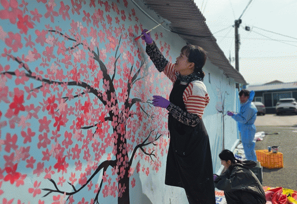영암왕인문화축제를 앞두고 진행된 이날 벽화 그리기는, 주민 일상에 소소한 즐거움을 주고, 신소정마을의 상징인 벚꽃 그림으로 관광객들의 발길을 끌도록 마련됐다.