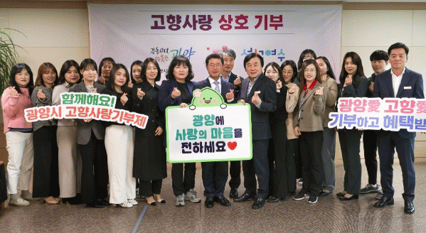 이번 상호기부는 광양시 아동보육과와 여수시 여성가족과 직원 31명이 자발적으로 참여해 총 310만 원의 고향사랑기부금을 교차 기부를 하며 고향사랑기부제의 성공적 정착과 서로의 지역발전을 응원했다.