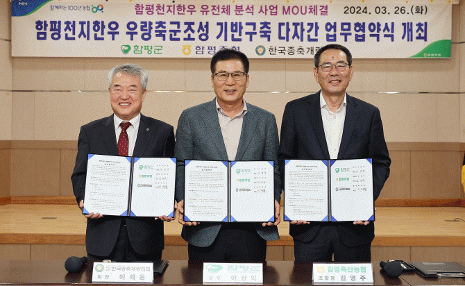 이번 업무협약(MOU) 체결로 우량축군 조성을 위한 고능력암소 조기선발 협업체계를 구축함으로써 함평군 내 축산농가의 우량종축생산 확대를 통한 생산성 향상과 이로 인한 농가소득 창출이 예상된다.