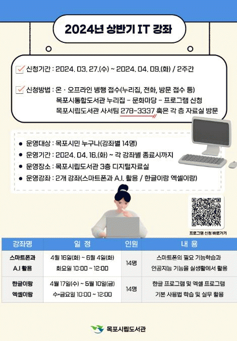 강좌별 자세한 일정은 목포시통합도서관 누리집을 통해 확인할 수 있다.