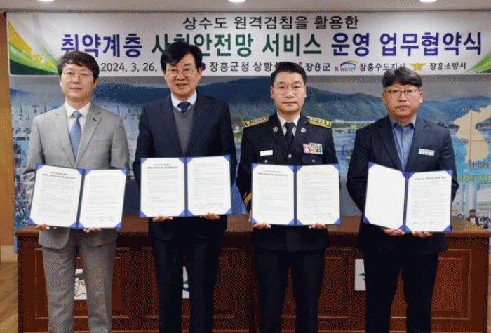 장흥군은 장흥소방서 및 한국수자원공사 장흥수도지사와 연계하여 상수도 원격검침을 활용한 취약계층 사회안전망 서비스 운영에 상호 협력하기로 했다.