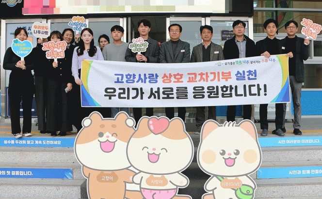 나주시는 각 지자체별 지역경제를 담당하고 있는 시 일자리경제과와 군 경제교통과가 고향사랑기부제 상호기부에 나섰다고 27일 밝혔다.