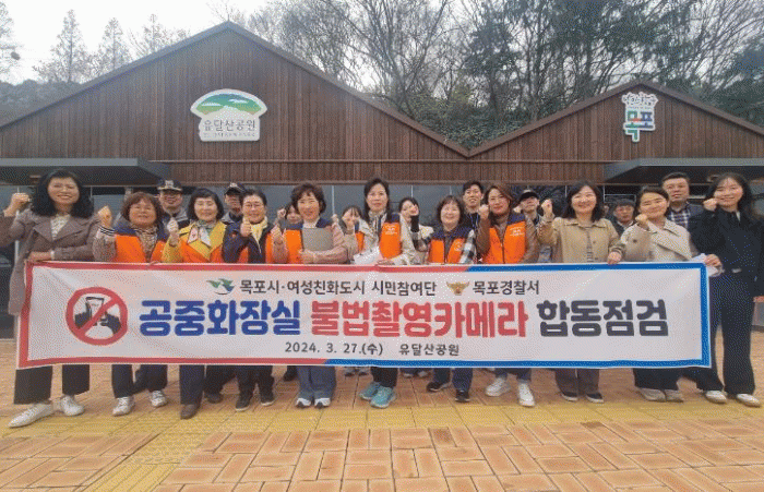 시는 목포경찰서, 여성친화도시 시민참여단 등 30여명이 합동으로 유달산공원 내 공중화장실 ▲불법 촬영 카메라 설치 유무 ▲안심벨 작동여부 ▲공중화장실 시설 운영상태 등을 점검했다고 밝혔다.