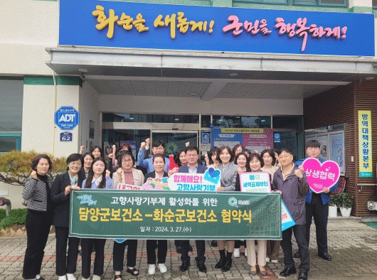 이번 협약은 담양군보건소(소장 김동진)와 화순군보건소 직원 30명의 참여로 이뤄졌으며, 서로의 지역발전을 응원하고 상호교차 기부를 통해 고향사랑기부제의 성공적인 제도안착 및 건전한 기부문화 확산을 위해 함께 노력하기로 했다.