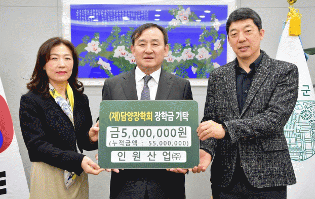 2002년 설립된 인원산업은 2016년부터 꾸준히 담양의 인재 양성에 관심을 이어와 올해까지 누적 5,500만 원의 장학금을 기탁했다.