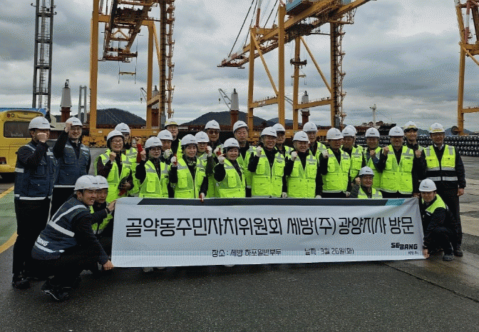 세방(주) 광양지사 강병호 지사장은 골약동 주민자치위원회와 사회단체의 하포 일반부두 방문을 환영하며, 연간 300만톤 이상의 물동량을 취급하는 세방(주) 광양지사의 지역경제 활성화 기여도와 취약계층 나눔 활동들을 설명했다. 또, 하포 일반부두의 발전을 위한 지역사회와의 교류와 상생을 강조했다.