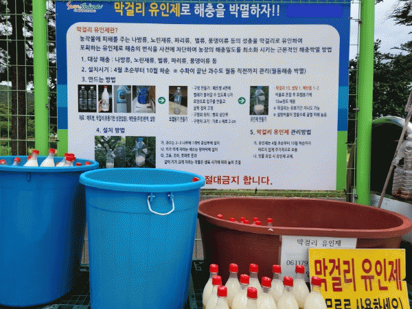 김동훈 작물환경팀장은 “폐기물을 재활용해 고부가가치를 창출하는 기술인 ‘업사이클링’을 적용한 폐막걸리 트랩은 제조가 간편해 누구나 쉽게 만들 수 있다”며 “폐막걸리 트랩 이용은 화학비료와 농약사용을 줄여 지속 가능한 친환경 농업 기반 조성에 기여할 것으로 기대된다”고 말했다.