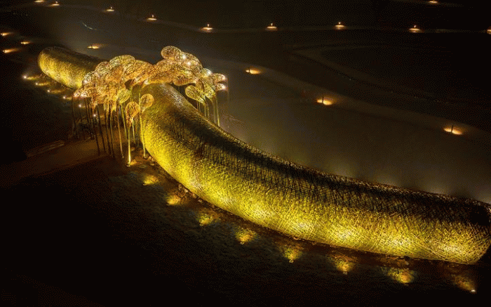 주요 콘텐츠로 국가정원의 아름다움에 반해 놀러 온 우주인이 착륙한 다리,‘스페이스 브릿지’는 환상적인 야간경관과 우주에너지와 순천만습지의 생명에너지를 미디어로 담아냈다.