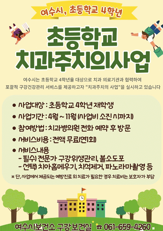 최영철 보건행정과장은 “구강건강이 중요한 초등학생 시기에 올바른 구강보건교육과 적절한 예방 진료를 통해 평생 구강건강의 기틀 마련에 도움을 줄 것으로 기대한다”고 전했다.