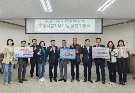 이번 교차 기부는 지난 2월 6일 지역 간 상생발전을 위해 남양면과 광영동 직원들이 상호기부를 한데에 이어, 양 지자체 사회단체 각각 21명이 자발적으로 동참한 주민 주도 교차 기부로 더욱 의미를 더했다.