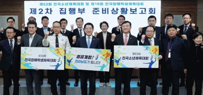 전남도는 28일 도청 서재필실에서 김영록 지사 주재로 전남도교육청, 전남경찰청, 목포시, 전남체육회, 전남장애인체육회 관계자 등 30여 명이 참석한 가운데 전국소년(장애학생)체전 준비상황보고회를 개최했다.