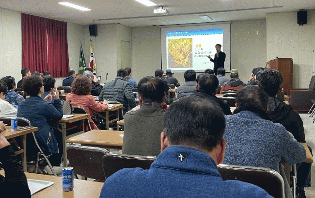 이날 교육은 지난 2월 6일 새해농업인 실용교육의 일환으로 추진한 1차 논콩 집합교육에 이어 두 번째로, 남부농협에서 소속 조합원들 대상 추가 교육 요청에 따라 군 농업기술센터 안준섭 작물연구팀장이 딱딱한 이론 교육이 아닌 실제 타 자치단체 선도법인 사례를 통한 기술교육으로 진행했다.