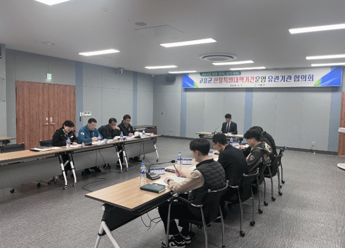 이날 회의는 고흥소방서, 고흥경찰서, 다도해해상국립공원 팔영산지구, 고흥군산림조합, 한국전력공사 고흥지사 등 5개 기관이 참석했으며, 산불 특별대책 기간 동안 산불방지 및 산불 피해 최소화를 위해 유관기관 협력 체계를 구축하고 기관별 산불예방 대책을 집중적으로 추진하기로 했다.