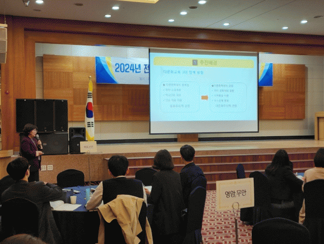 전남교육청, 전라남도청, 전남교육청국제교육원, 22개 시·군교육지원청 및 기초지자체, 가족센터 관계자가 참석한 이번 협의회에서는 2023년 다문화교육 사업 추진 현황과 개선 사항, 2024년 사업 추진 방향과 정책 제안, 지역 기반의 다문화교육 사업 방안 등을 공유했다.