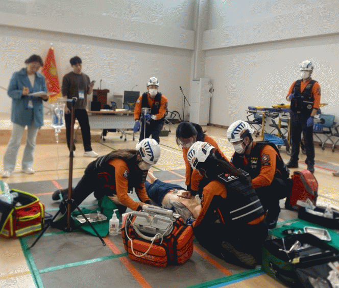 이번 대회 1위를 차지한 구급 분야는 심정지 환자 발생 다중 출동 상황에서 구급지도의사 의료지도를 받아 시행하는 응급처치와 약물투여 등 전문소생술(ACLS)과 다수환자 발생 시 구급대원의 정확한 중증도 분류와 외상환자 처치 등 구급대응 역량을 평가한다.