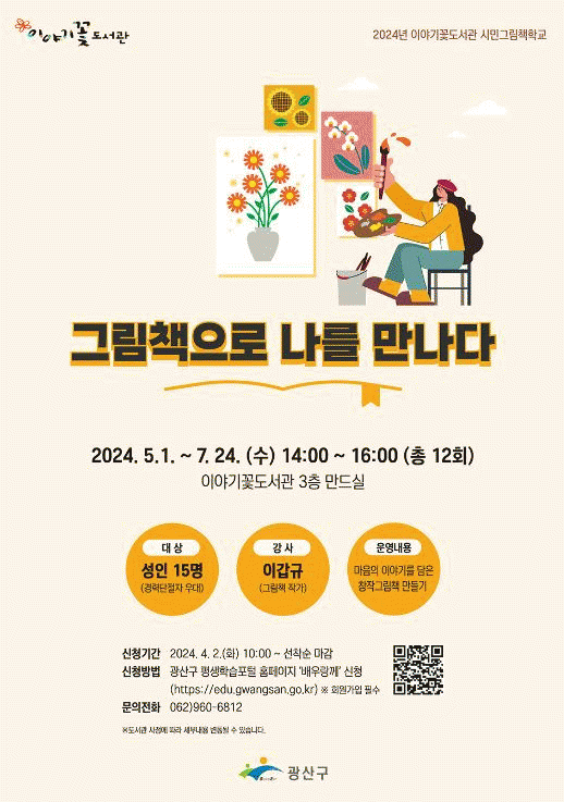 시민 그림책 학교에 대한 자세한 내용은 이야기꽃도서관으로 문의하면 된다.