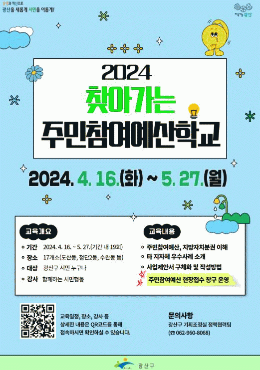 한편, 광산구는 2025년 예산편성을 위한 주민참여예산 제안사업 아이디어 공모를 5월 31일까지 진행하고 있다.