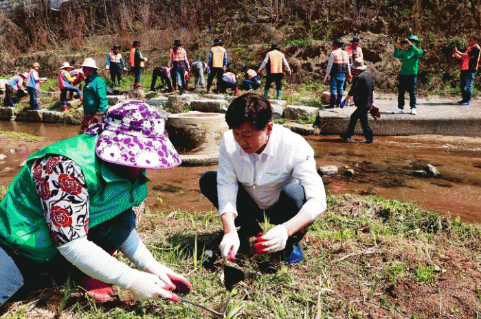 꽃창포는 중금속, 영양염류 흡수와 악취제거 능력이 뛰어나 수질정화식물로 인기를 얻고 있는 수생식물로 이날 식재에는 보성군청년협의체를 비롯한 15개 지역단체가 동참했다.