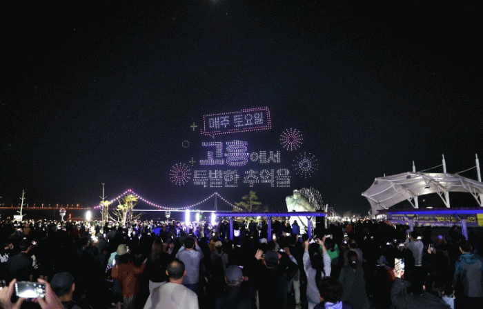 부모님과 함께 녹동항을 찾아온 금산면 출신 재경향우는 “뜻하지 않게 우연히 멋진 드론쇼 공연을 보면서 부모님과 평생 잊지 못할 추억을 담았다”면서 “상설공연 기간 내 기회가 되면 자주 녹동항을 찾아올 생각이다”고 기쁜 마음을 전하며 즐거워했다.