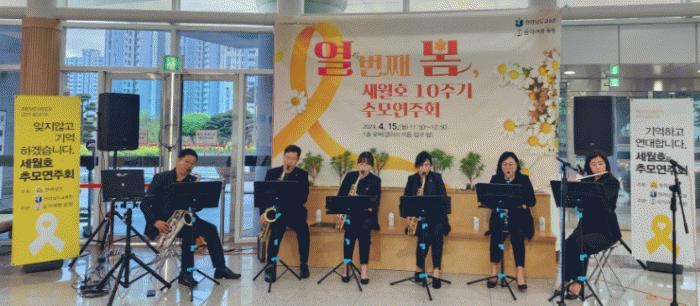 15일 청사 1층 로비에서는 세월호 참사를 기억하고, 아픔을 겪은 사람들을 위로하는 추모음악회가 열렸다.