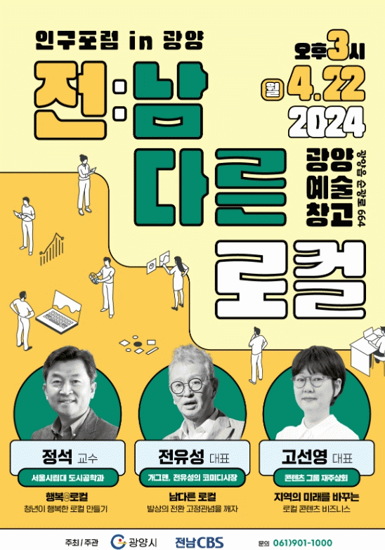 전남CBS와 공동으로 마련한 이번 포럼은 수도권 인구 집중화로 인한 지방소멸과 저출생·고령화로 인한 인구문제에 대한 해법을 찾고자 ‘로컬’을 매개로 지방도시 미래 전략을 마련하는 장으로 마련됐다.