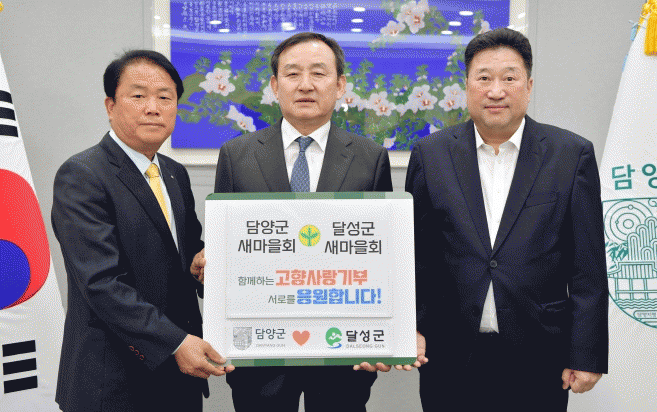 달성군 새마을회는 2015년 담양군 새마을회와 자매결연을 맺은 후 담양군과의 상생 교류 및 협력을 위해 꾸준히 노력했으며 이번 상호기부 역시 주민주도 지역 상생발전과 고향사랑기부제의 성공적인 정착을 응원하는 각 새마을회의 뜻을 모아 성사됐다.