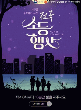 손인규 기후대기정책과장은 “지구의 날을 맞아 지구의 소중함을 다시 생각하고 일상에서 지구를 지키는 작은 실천에 동참하기 바란다”며 “지구를 지키는 기념행사와 소등행사에 많은 시민의 참여를 부탁드린다”고 말했다.