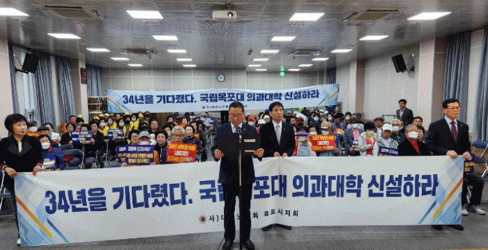 조성재 지회장은 “노인 인구 비율이 높고 의료 취약지역인 전남 서부권 주민들의 건강권 확보를 위해 국립목포대학교에 의과대학을 즉각 설립해야 한다”며 호소했다.