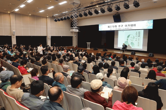 한편 동구 아카데미는 매월 1회 각 분야 전문가를 초빙해 강연을 듣는 평생학습 프로그램으로 다음 강연은 오는 5월 10일 진행된다. MBC 개그맨 출신의 컨디션 트레이너 강사 ‘이칠선’ 씨가 강연자로 나서 ‘몸의 건강, 마음의 행복’이라는 주제로 웃음과 건강 비법을 전해 줄 예정이다.