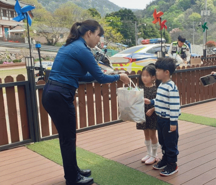 호신용 호루라기는 아이들이 위험한 상황에 처했을 때 각종 범죄로부터 보호받을 수 있도록 경찰 응원 영상을 찍어준 산새소리숲 유치원 어린이들에게 전달됐다.