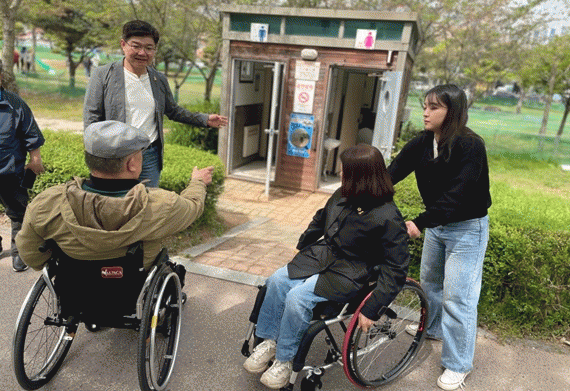 실태조사는 휠체어를 사용하는 김미경 의원과 함께 직접 경험을 하며 이루어졌다.