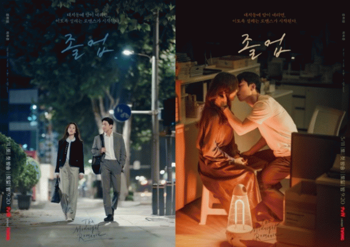 그런 가운데 공개된 미드나잇 로맨스 포스터 2종은 대치동의 밤을 물들일 서혜진과 이준호의 모습으로 설렘을 자아낸다. 먼저 서혜진과 이준호의 나란한 퇴근길이 시선을 사로잡는다.